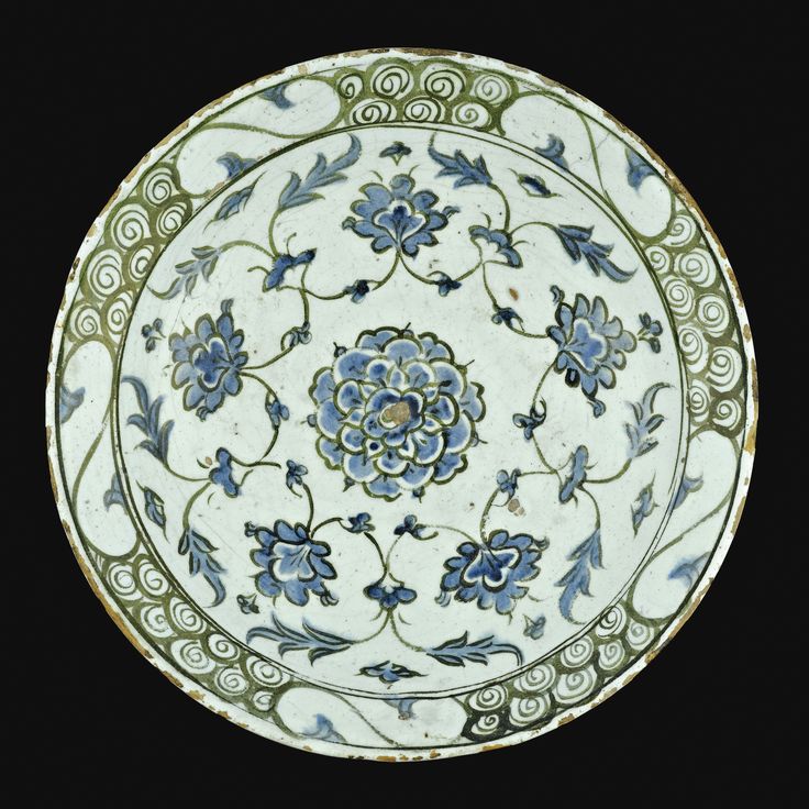 Iznik monochrome pottery dish Turkish C17th