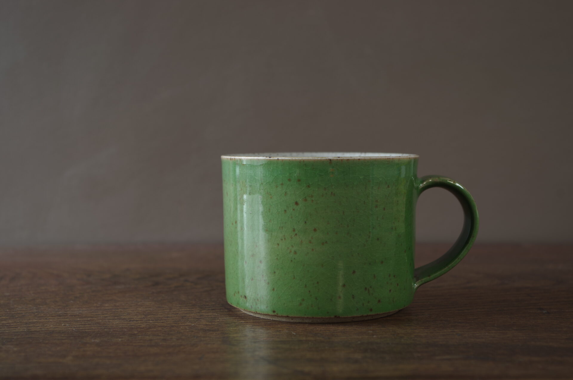 Thrown stoneware large breakfast mug with green glaze.