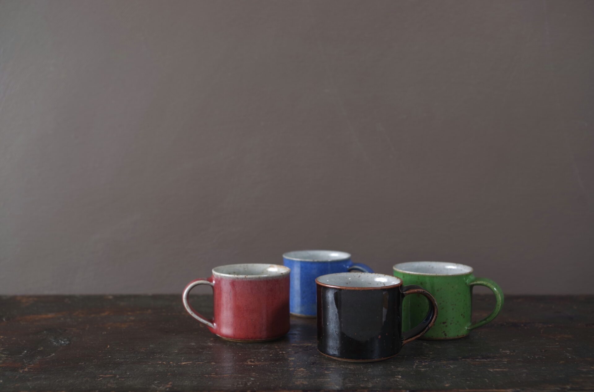 Thrown stoneware espresso cup with pulled handle and copper red glaze.