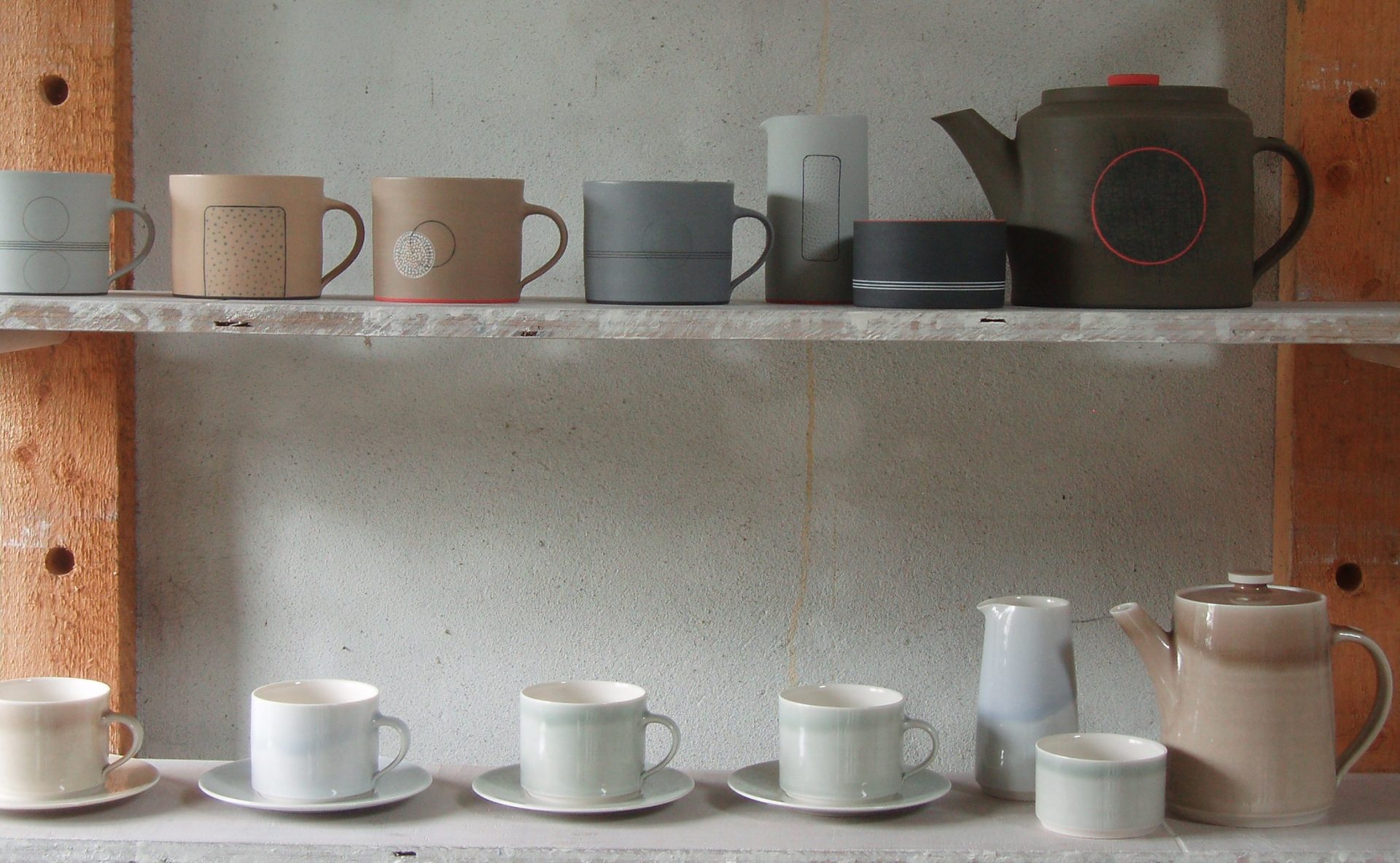 We’ve finished the two teasets which we’re sending to Stoke for the British Ceramics Biennial. The one on the top shelf is mainly unglazed (“naked”) with minimal abstract decoration on coloured stoneware clay.… Read more...