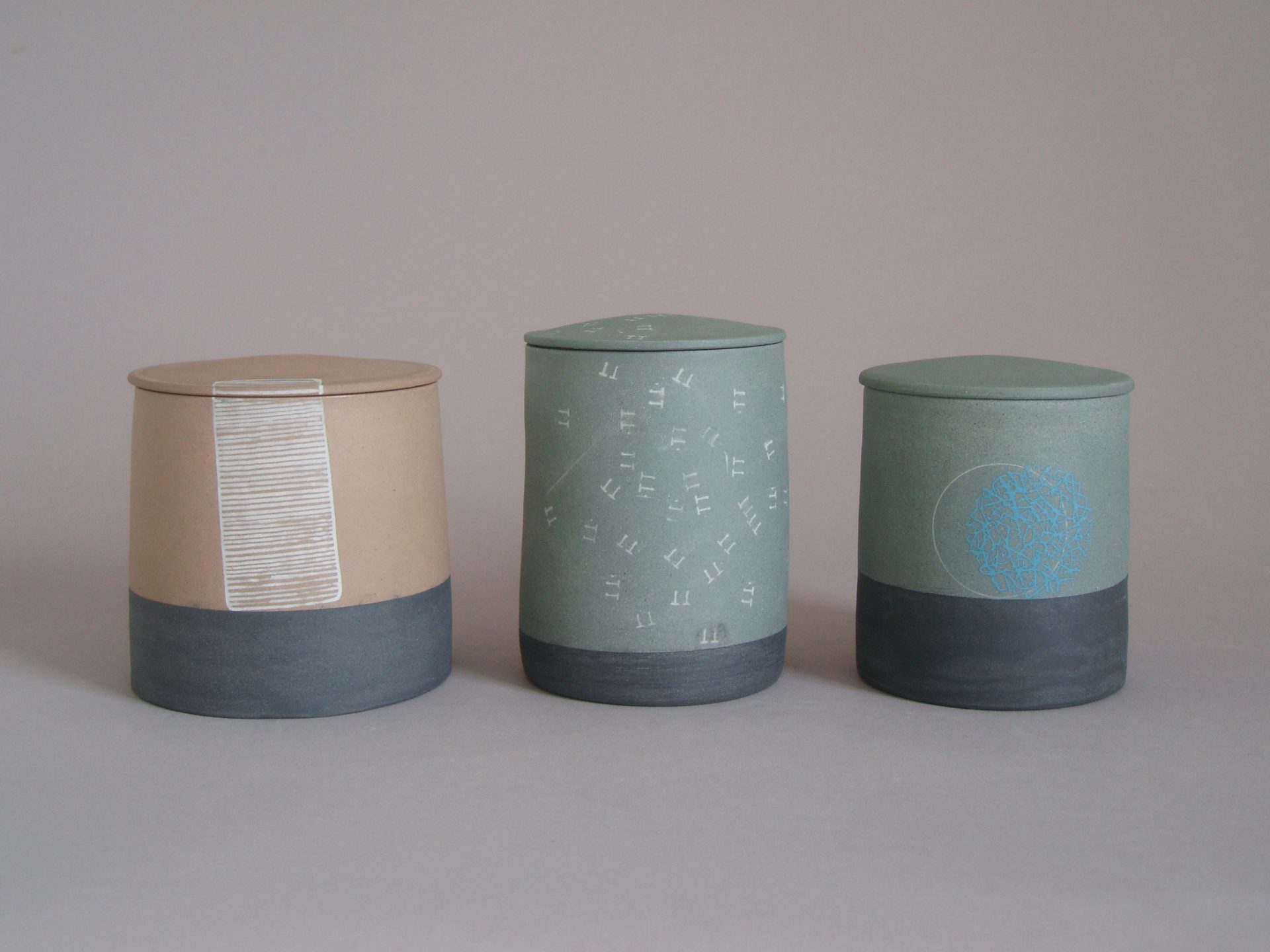 After a ten year break I’ve done some throwing. I started with flower pots in the Summer and have recently finished these lidded jars.